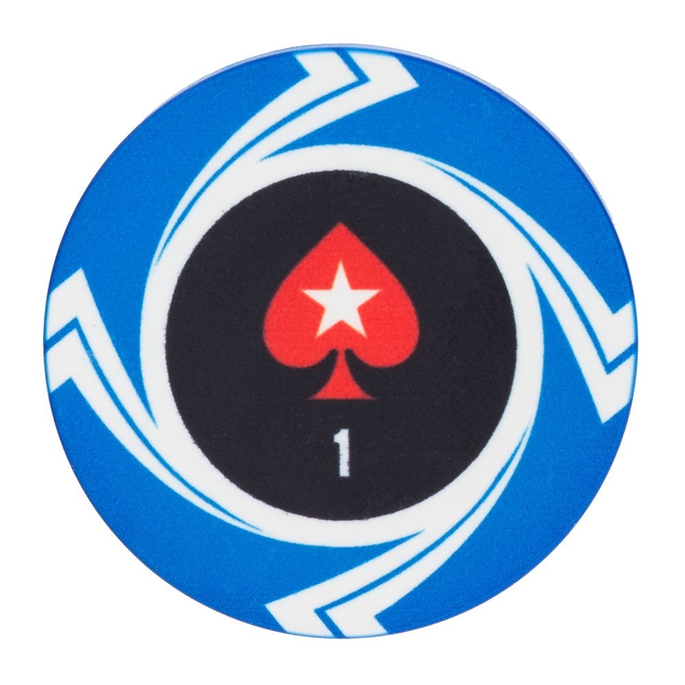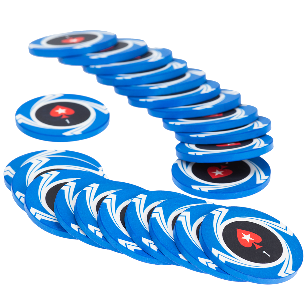 A roll of 25 ceramic blue chips, numbered with ‘1’. Rounded edges for smooth play.
