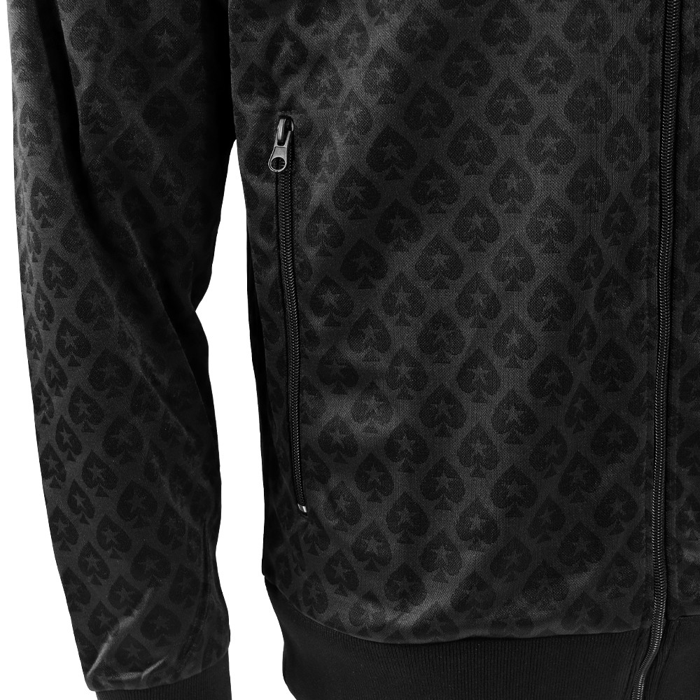 This track top features our unmistakable PokerStars spade in a unique tonal monogram design and delivers both maximum comfort and a truly deluxe look.Ideal for both lounging at home and outdoors, the track top includes a funnel neck collar and ribbed cuffs and hem for a snug fit. The zipped pockets are ideal for storing valuables.