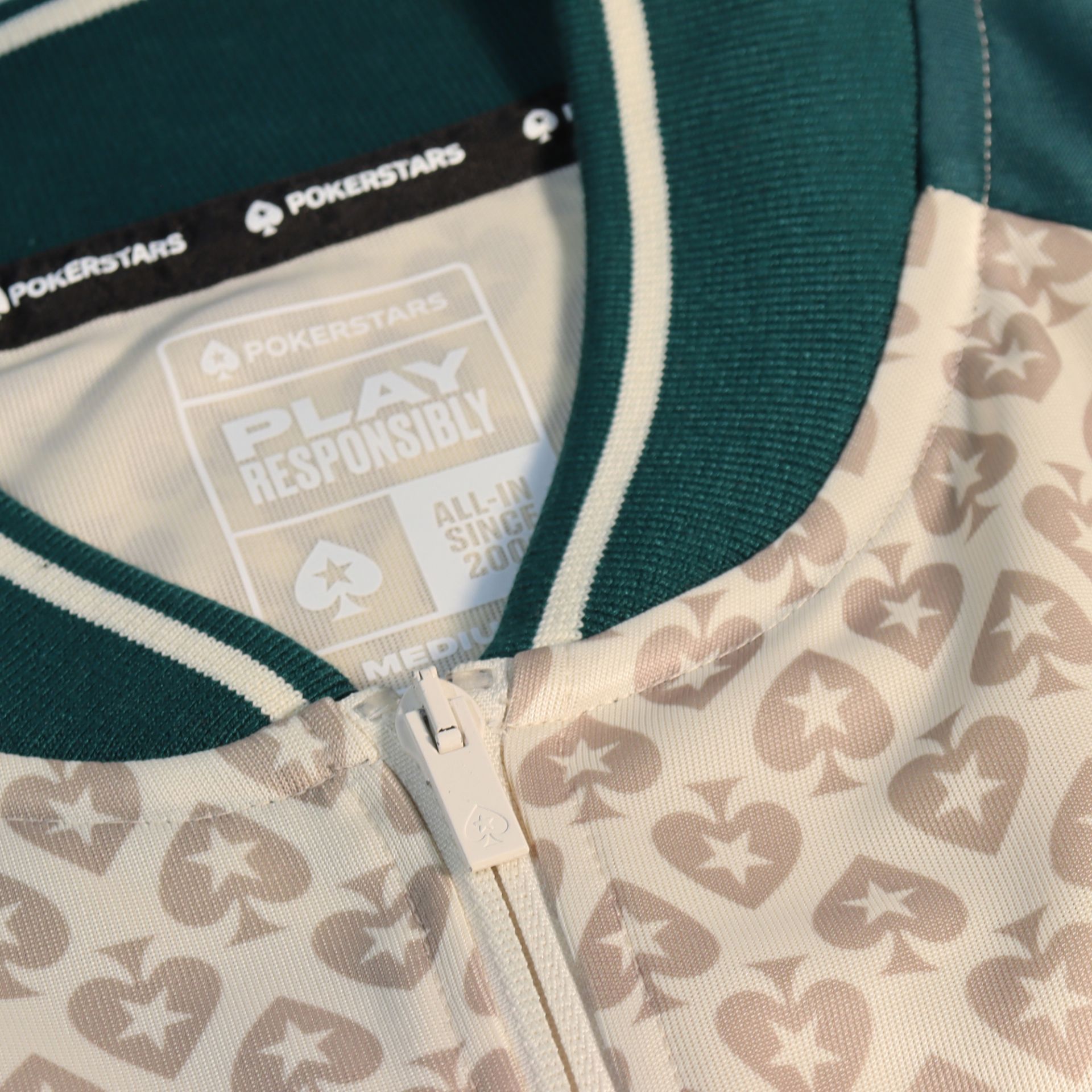Made from 100% polyester, this PokerStars track top is ideal for any casual occasion, whether you’re playing at the tables, hitting the track or lounging at home. Not only does it feature our classic spade in a monogram design but it also has a two-tone colour scheme thanks to the stone front and back twinned with green sleeves. And this track top isn’t style over substance because it’s equipped with two zipped pockets that are perfect for storing your everyday essentials.